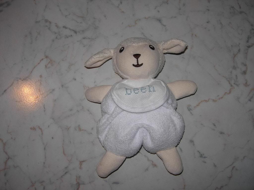 e questo è il mio principino...per lui non c'era la maglietta ma anche lui era presente quindi gli ho messo al collo la sacca che conteneva il kit per il ricamo di gruppo, che però io non ho fatto, ho messo solo 10 crocette o poco +...troppo presa dalle chiacchiere, ma sicuramente lo ricamerò!!