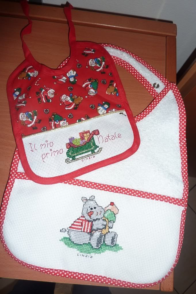 la cosa più bella è che tutte e 3 abbiamo avuto la stessa idea...io ho ricevuto queste bellissime babucce da Anna e il body con l'applicazione da Chiara...